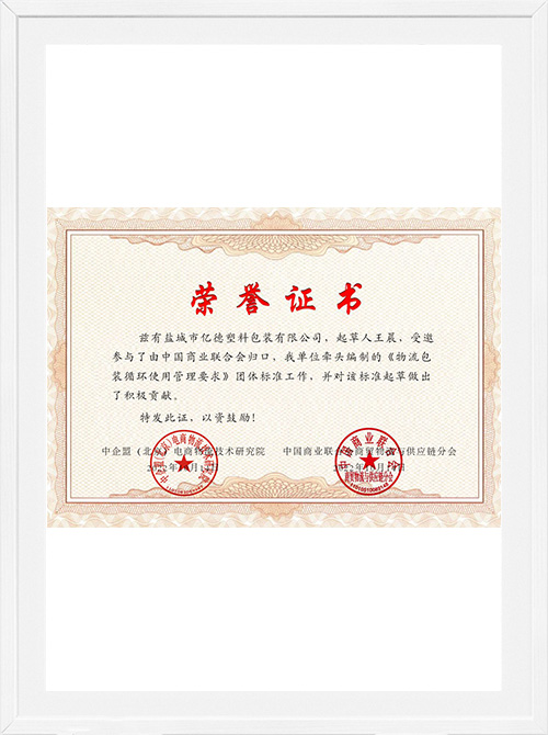 Компания Yancheng Yidde Plastic Packaging Co., Ltd. является вице-президентом Китайской ассоциации пластмасс, руководящей единицей Всекитайской федерации охраны окружающей среды, заместителем директора подразделения "зеленых" цепочек поставок, была основана в январе 2003 года, является национальным высокотехнологичным предприятием, провинциальным центром инженерных исследований и разработок высокоэффективных полипропиленовых упаковочных материалов для строительства предприятий, предприятий по надзору за производством почтовых сумок Государственной почтовой администрации, предприятий национальной почтовой, экспресс, электронной торговли, логистической индустрии по производству зеленых упаковочных материалов;Специализированное новое малое гигантское предприятие провинции Цзянсу, складское предприятие "Газель", частное научно-техническое предприятие провинции Цзянсу; заместитель руководителя группы по разработке стандартов "Контейнерные пакеты", подразделение по разработке стандартов группы "Требования к управлению переработкой логистической упаковки".На протяжении многих лет компания была удостоена званий "Предприятие, рекомендующее зеленую упаковку", "Инновационное предприятие в области технологий упаковки для электронной коммерции и логистики", "Демонстрационное подразделение зеленой упаковки для современной логистики" и "Ежегодный поставщик услуг для китайских брендов" от National Post Group Corporation и China E-commerce Alliance. Компания прошла сертификацию Государственной администрации по регулированию рынка на экологичность экспресс-упаковки, систему управления качеством 9001, систему управления охраной труда 45001, систему управления охраной окружающей среды 24001 и другие сертификаты.